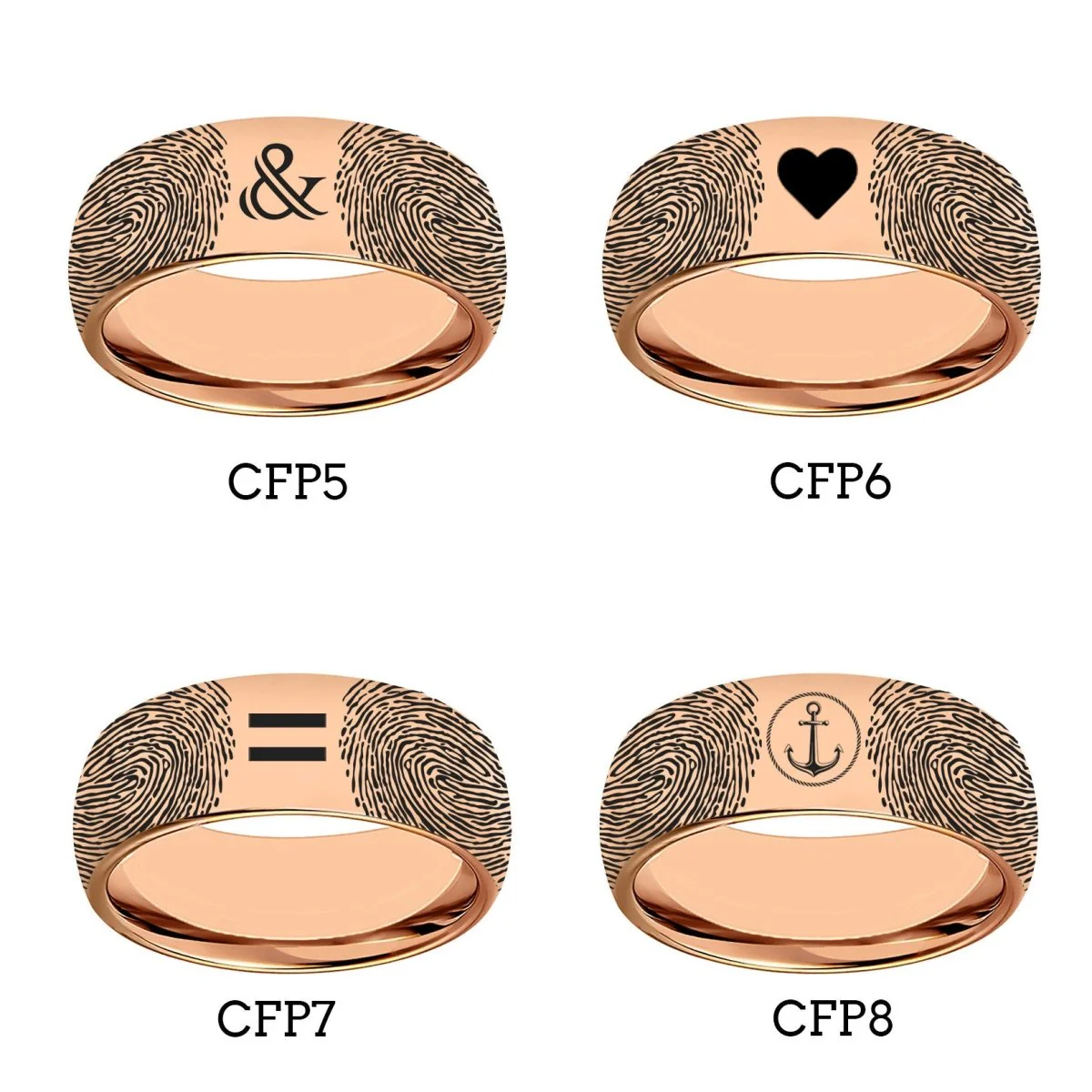 Rose Gold Tungsten Carbide Fingerprint Ring for Couples, Memorial or Wedding